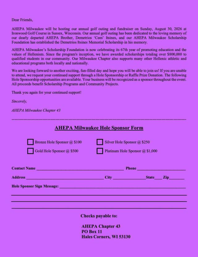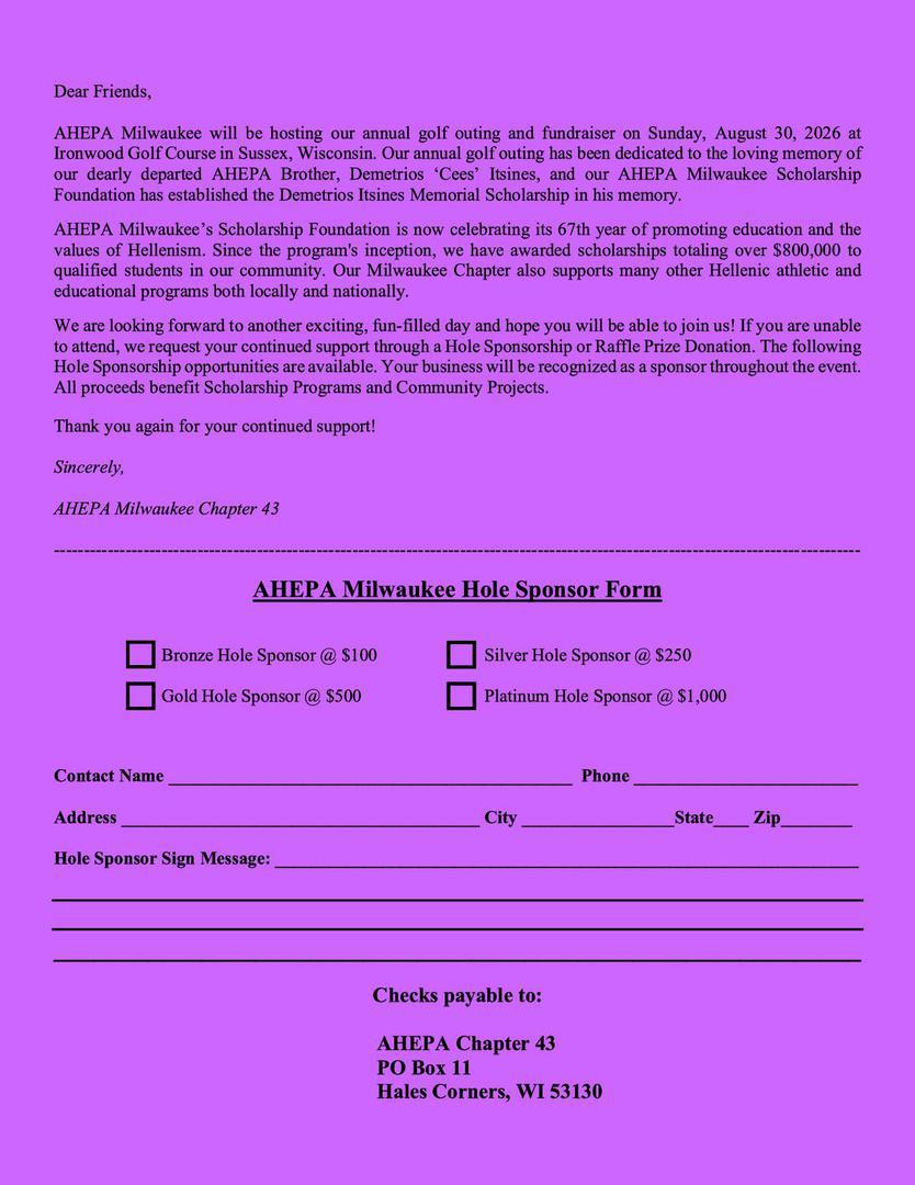 AHEPA Golf Outing Registration